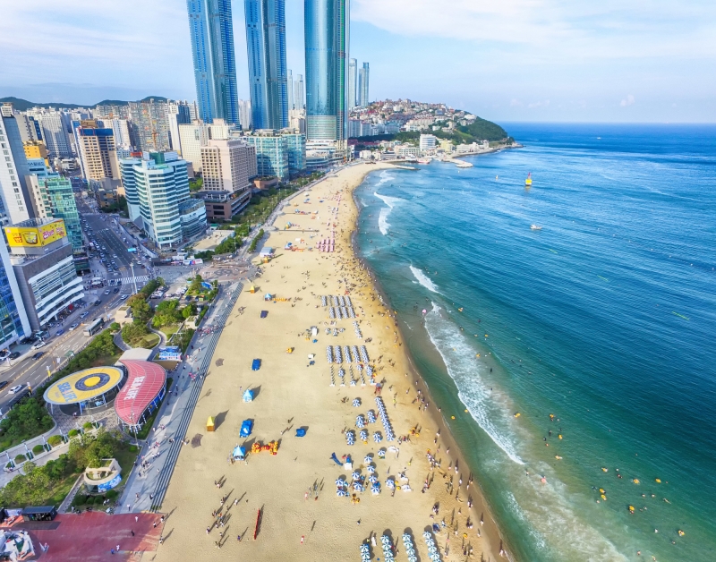海雲台駅3番出口または、5番出口から徒歩約8分の場所に位置する「海雲台ビーチ」は、韓国内でも人気のリゾート地として知られています。