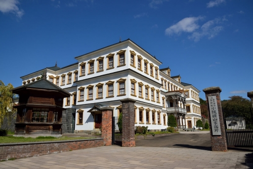 明治期から大正期にかけて、金銀などの鉱物産出額日本一を誇った小坂町のシンボルとなる建物で、国の重要文化財にも指定されています。ルネサンス風3階建ての建物のほとんどを天然の秋田杉でまかない、中央には1本の丸太を使用した3階まで続く螺旋階段、建物正面にはイスラムデザインのバルコニーがあります。館内では、日本鉱山の父と呼ばれたクルト・ネットーが描いた明治期の小坂の暮らしぶりのスケッチや、当時の鉱山設備の様子などをパネルで展示。潤沢で華やかな当時の様子を垣間見ることができます。
