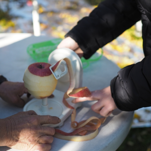 りんごは中にたっぷり蜜が入っていて、とっても甘い!皮むき器も貸してもらえますよ。