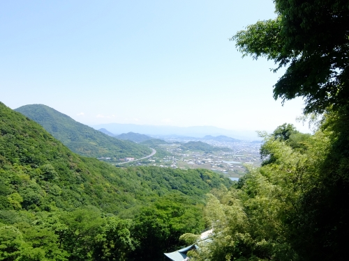 弘法大師は7歳の時、我拝師山に登り「仏の教えで人々を救いたい。叶わないならこの身を諸仏に捧げる」と断崖から身を投げました。すると釈迦如来と天女が現れ、大師を抱きとめたと言われています。本堂から奥の院へは2キロの険しい山道を行かなければいけませんが、出釈迦寺内には遥拝所があり、ここから参拝することが可能です。