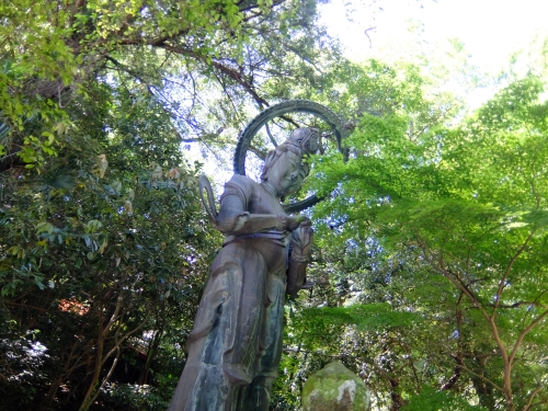 大師堂や本堂へは仁王門から370段もの階段を上らなければなりませんが、両側がうっそうと生い茂った沿道には石仏や五輪塔や金剛拳大菩薩像があり、山岳霊場ならではの雰囲気を味わうことができます。