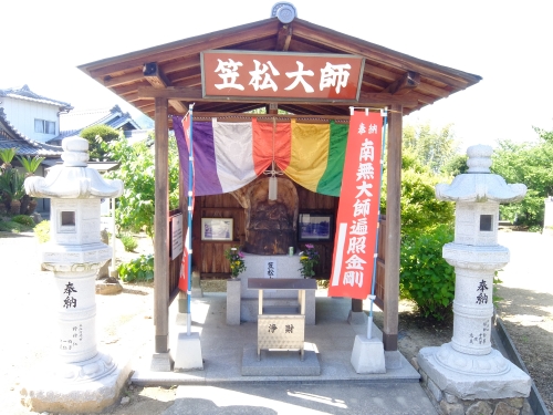 境内には、大師が手植えしたと伝わる樹齢1,200年もの不老松がありましたが、残念ながら虫害により枯れ伐採されてしまいました。現在は、その不老松の幹で彫られた笠松大師が祀られています。