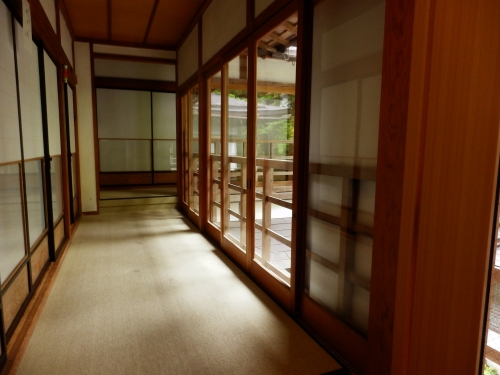 大玄関で靴を脱ぎ、世話をしてくれる僧侶の案内でお部屋まで。よく整えられた中庭が落ち着いた雰囲気を醸し出しています。歴史を感じさせる廊下は、洋室生活が長くなってきた日本人にも、日本の趣を思い出させてくれます。