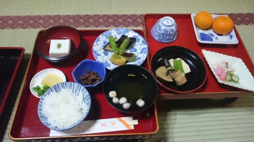 夕食はもちろん精進料理。普賢院では客室とは別の部屋に用意されます。