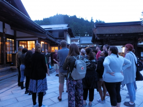 集合時間は19時15分。大勢の人たちが恵光院に集まっていますが、よく見ると外国人が大多数。実は、このツアー、同じ時刻に日本語だけでなく、英語でも行っているのです。