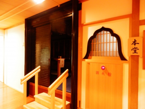 境内は意外と広く、さまざまな建物があります。ひときわ目を引くのが、ご本堂の隣にある摩尼(まに)殿。朱色の建物です。地下室もあり、朝の勤行のときに案内していただけます。