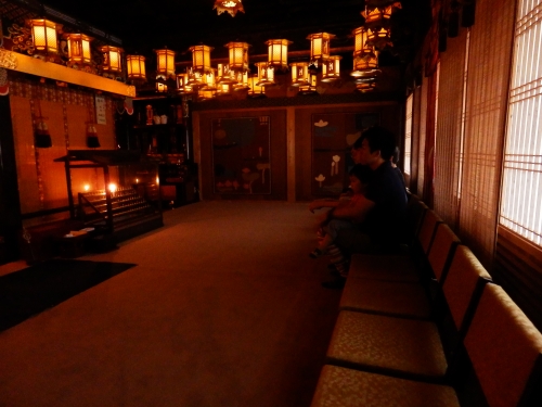 薄暗い中、ろうそくだけに照らされる本堂、そこに音楽のように流れる僧侶たちが唱えるお経を聞いていると、自分がどこにいるのかわからなくなってきます。しばらくすると、僧侶の案内でご焼香と御本尊の参拝を行います。
