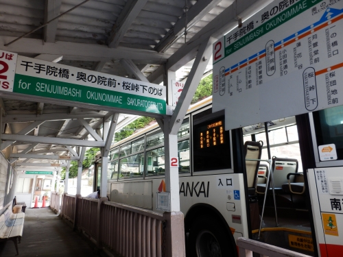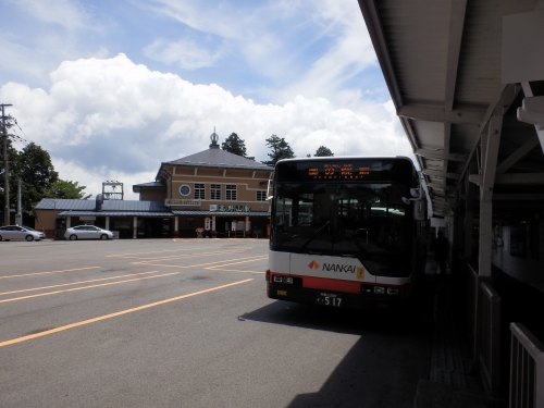 高野山駅に着いたら、到着ではありません。ここからはバスに乗り換えて高野山の町へ向かいます。