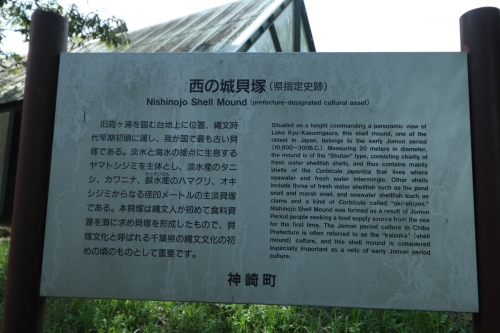 縄文時代初頭に属する、日本で最も古い貝塚の一つ。ヤマトシジミを主体として、タニシ、カワニナ、ハマグリ、オキシジミなどから成る径20メートルの貝塚です。小屋が建てられていて、外から見学するようになっています。