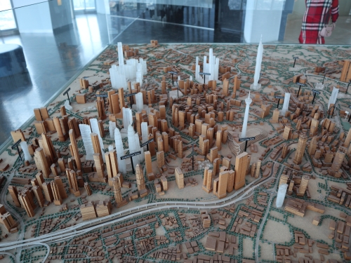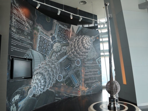 次に見学するのが、88階の展望デッキです。ここでは45分間の時間制限があります。映像や模型、パネルも展示され、隣に立つタワー1を間近に見られるので、大興奮間違いなし!
