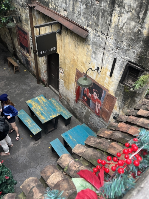 壁画に描かれているのは、ビー玉で遊ぶ子供たちや、二胡を演奏するおじさん、書道家などなど。それぞれの壁画にはQRコードが設置されていて、スマホをかざすと簡単な説明が表示されます。