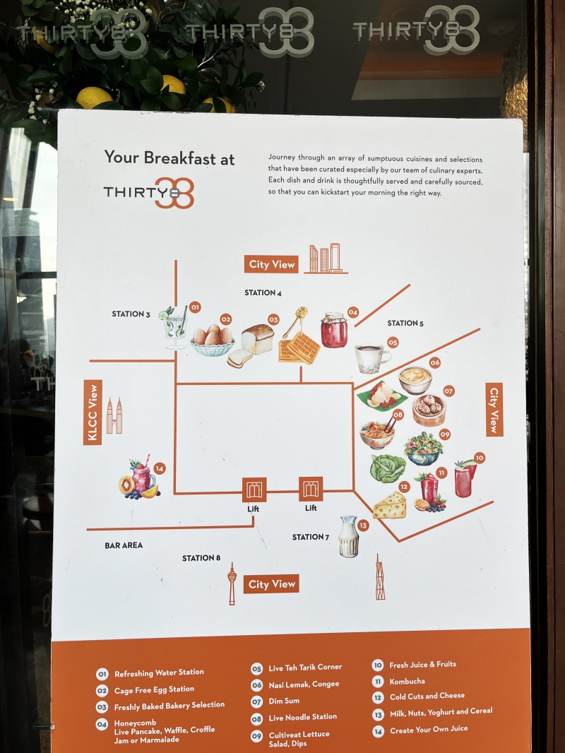 写真:bluemoonペトロナスツインタワーを目の前に望む、モダンな五つ星ホテル「グランド ハイアット」。その38階にあるパノラマダイニング「サーティーエイト(Thirty8)」の豪華な朝食ビュッフェをご紹介します。