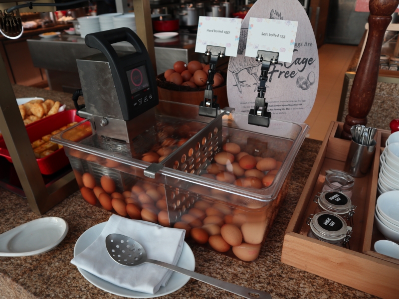 朝食ビュッフェは、平日は先着順で宿泊客以外の方も利用可能です。料金はRM98.00(約3,430円)です。朝6:30 から10:30までの4時間、時間制限なしでゆっくり食事を楽しめます。