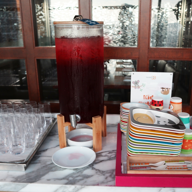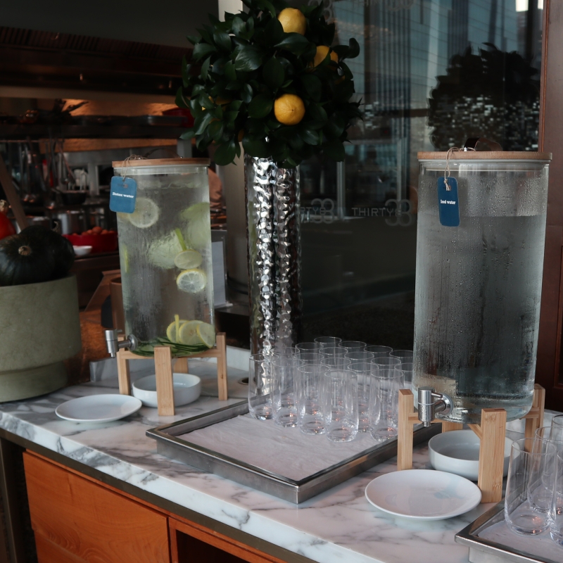お水は普通の冷水以外に、健康と美容に良さそうな、ビタミンCたっぷりの「ハイビスカスウォーター」や、かすかにキュウリの味がする「デトックスウォーター」などが用意されています。