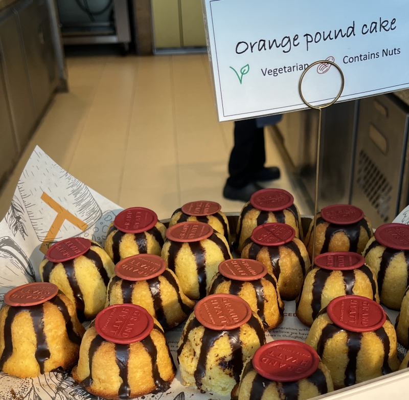 パンはソフト系のものからハード系のものまで、とにかく種類が豊富です。温かいサクサクのクロワッサンやデニッシュ、グランドハイアットロゴマークチョコ付きのオレンジパウンドケーキも絶品です。