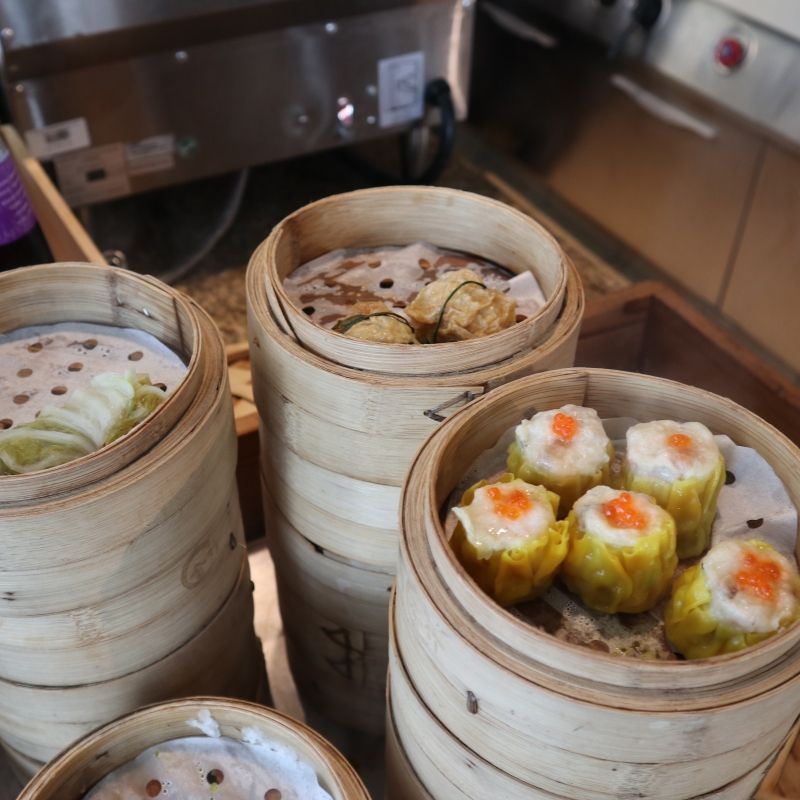 しゅうまいやチャーシューマンなど、せいろに入った出来立てのほかほか点心は、種類も豊富で本格的。