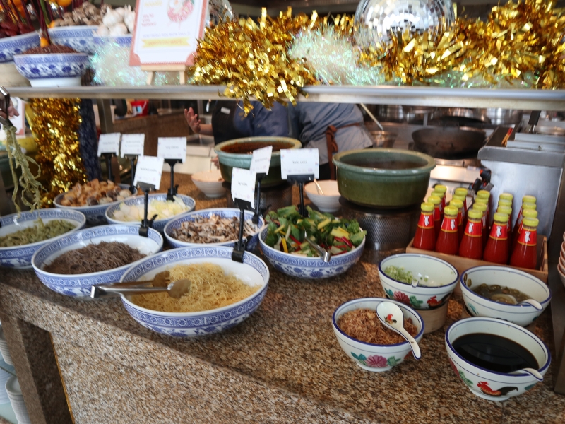 麺の種類と具材は自分の好きなものを選び、ライブキッチンで作ってもらえる「カスタマイズヌードルコーナー」。筆者は、前日の夜に麺を食べすぎたのでパスしましたが、オーダーしている人が多かったです。
