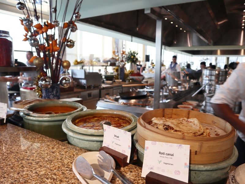フロアの中心にある活気あふれるライブキッチンでは、マレー料理をはじめ、東西様々な料理を融合させた華やかな料理を提供しています。