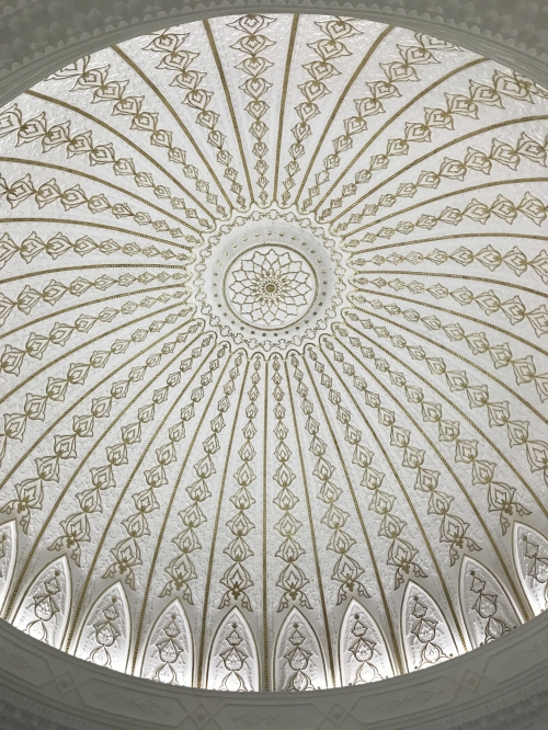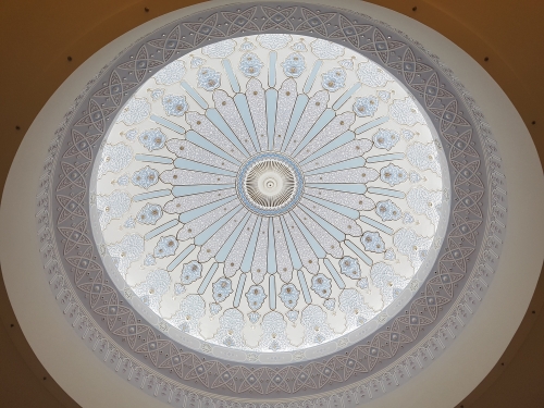 幾何学文様とカリグラフィーによる装飾は、ずっと見ていても飽きません。それぞれ違う色・デザインのものが美術館内に4つあるので、上も見るのをお忘れなく。