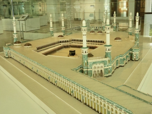 展示を見るために受付から1階へ。世界各地のモスクのミニチュアが並びます。