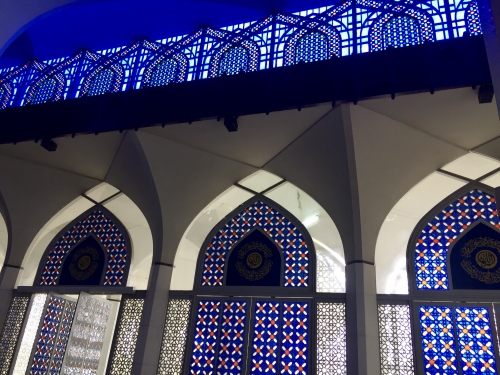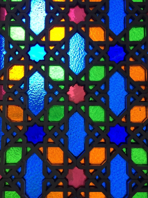 モスクによく見られる美しい幾何学模様のステンドグラス。