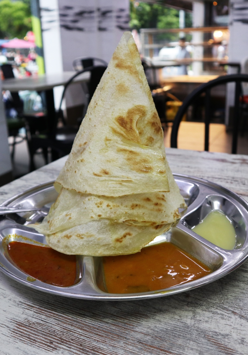 このお店の看板メニューは、「ロティティシュ」と呼ばれる、薄くのばした生地を円すい形に丸めてサクサクに焼き上げたものにカレーや練乳をつけていただく料理。何もつけなくてもお菓子みたいで美味しいのでぜひ!