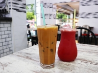 写真:bluemoon |  写真:bluemoon Restoran Alam Berkat Mamakのメニュー |  写真:bluemoon 左:アイスミルクティー RM2.00(約66円)、右:スイカジュース RM6.00(約198円) |