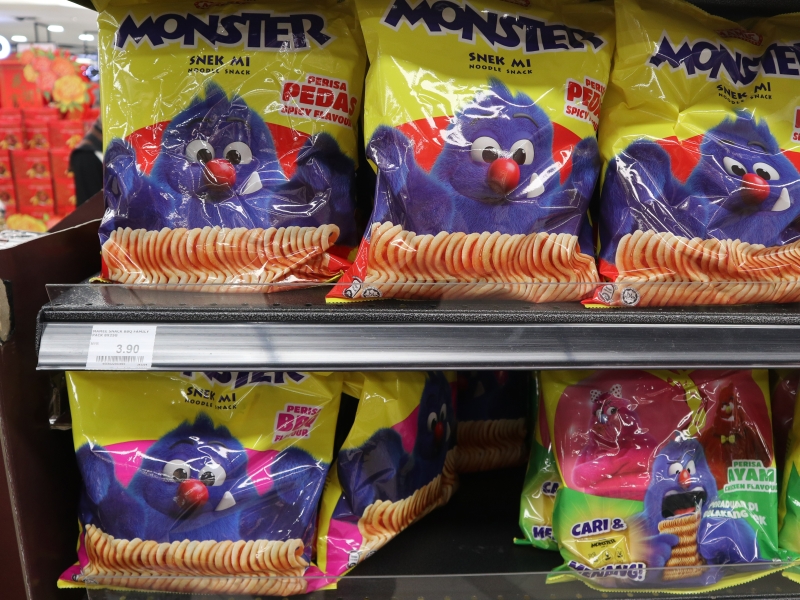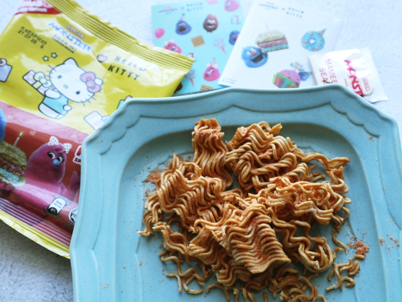 1971年にマラッカで始まったマレーシアブランド「MAMEE」のヌードルスナック「モンスター」は、インスタント麺のようなスナックにシーズニング(味付けの粉)をふりかけて食べるお菓子。