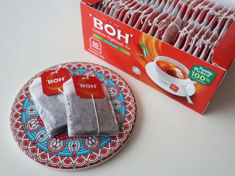 「BOH(ボー)」は、マレーシアのキャメロンハイランドで生産される紅茶のブランドで、王室御用達の紅茶として知られています。渋みが少なくすっきりした味わいで飲みやすく、マンゴーやライチなどのフレーバーティーのティーバッグが人気です。マレーシアのスーパー、お土産屋さん、空港などで購入できます。