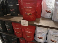 写真:bluemoon ベリーズ「ティラミス アーモンド ホワイトチョコレート」300g入り RM31.80(約1,113円) |  写真:bluemoon 「SENI KITA」の美しい柄のコースターや鍋敷き |  写真:bluemoon 裏面にコルクシートが貼られたコースター |