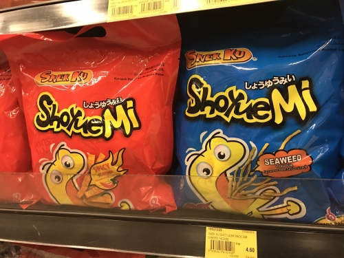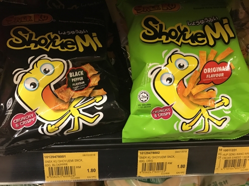 こちらもマレーシアのスーパーやコンビニに必ず並ぶ、人気のヌードルスナックの1つ。なぜか日本語が書いてある不思議なパッケージですが、日本のお菓子ではありません(笑)。