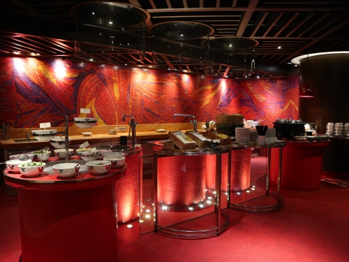 サラダステーションでは、葉物はハサミを使って自分でカットするというスタイルにびっくり。マレーシアのホテルビュッフェでは、このハサミカットスタイルが定番のようです。