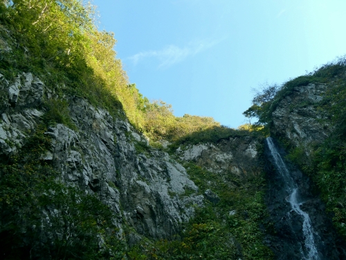 海岸線をずっと走っていく県道268号線沿いにある滝。落差はおよそ20mあって、下から見上げると相応な迫力を持った滝です。そんな迫力とは裏腹に、道端にバス停がポツンと佇むのみの場所にあるので、実際に訪れてみるとビックリしますよ。荒々しい三陸の海岸線を横目に、駐車スペースにちょっと車を停めて、気軽に立ち寄ってみてくださいね。