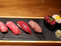写真:旅田サトシ 特選馬にぎり(6種盛り・税込2,500円) |  写真:旅田サトシ 岡田喫茶サテライト店 |  写真:旅田サトシ 和栗のモンブランセット(税込950円) |