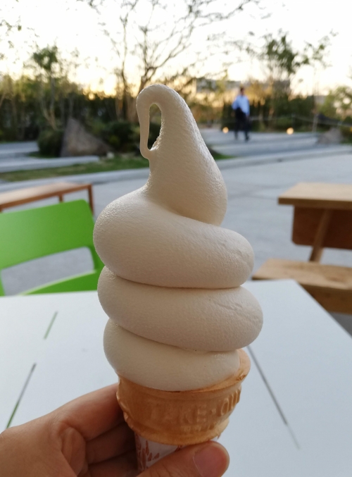 サクラマチガーデンカフェの「カフェオレソフト」(屋上)