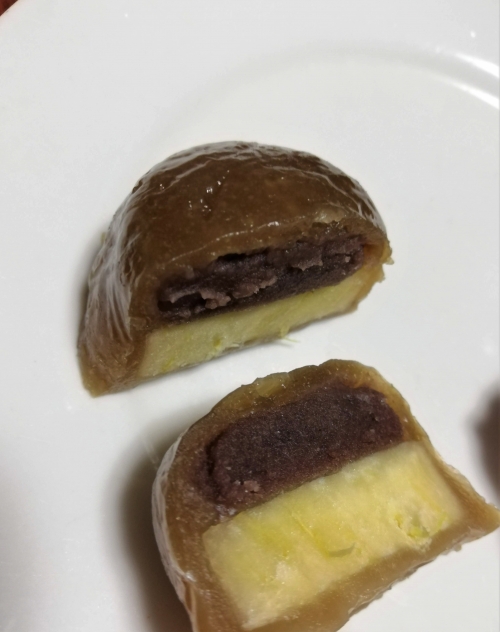 右上の写真の「黒糖いきなり団子」は、黒糖あんとサツマイモがおいしく調和しています。熊本のきれいな水で練りあげた皮は、もちもちしていながら主張しすぎず、中身との割合が絶妙です。