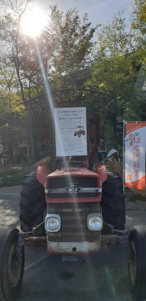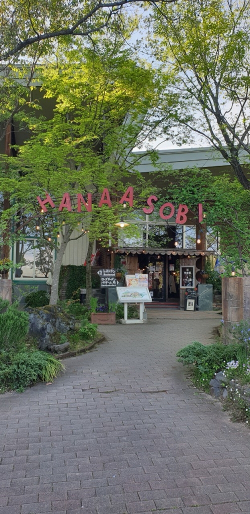 もう一つ、道の駅をご紹介。大観峰から車で10分弱の場所にある「はな阿蘇美」。イチゴ狩りやバラ園散策を楽しむことができる、緑溢れた道の駅となっています。