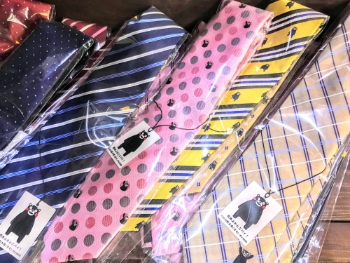 くまモンのネクタイは、ビジネスでも使えるように、下の方にワンポイントで刺繍されているのがポイントです!種類も色んなデザイン・カラーのものが用意されています。男性へのお土産としてぜひいかがでしょうか?