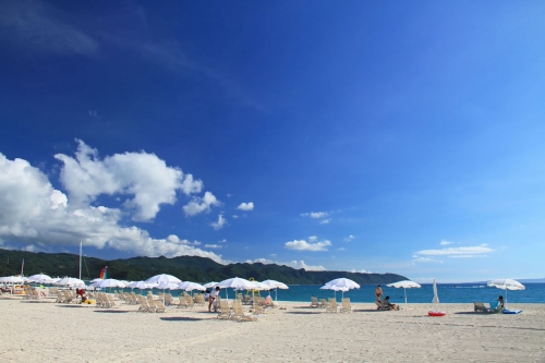元々アメリカ軍の保養施設があった場所に建てられた「オクマ プライベート&リゾート」というホテルの敷地内にあるビーチ。天然の白浜ビーチは約1kmに渡って続き、夕暮れ時には東シナ海に沈む雄大なサンセットショーを堪能できる贅沢なロケーションが魅力です。また環境省による水質ランク判定では毎年のように最高級の「AA」レベルを獲得しており、自然が織りなす美しさはまさに地球からの贈り物。グラスボート、ウエイクボード、シーカヤック、マリンウォークなどの充実したマリンアクティビティももちろん楽しめます。