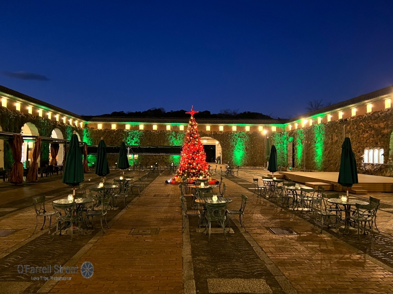 筆者が訪れたのはちょうどクリスマスシーズンで、夕暮れ時からライトアップされた中庭広場は、大きなクリスマスツリーが暗闇に浮かび上がり、ロマンチックな雰囲気に包まれていました。
