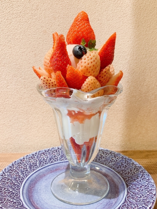今回は、総本店で12月上旬~5月中旬頃までいただける「白いちごパフェ(2,200円:税込)」と「紅白いちごパフェ(1,980円:税込)」を注文しました。