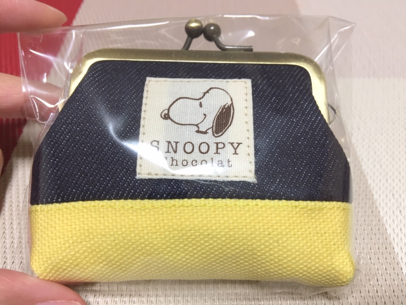 「スヌーピーショコラ倉敷 ツートンがま口Sサイズ(1,650円:税込)」はデニム生地のがま口で、下の部分が黄色の他、ピンクと水色の3色展開です。小銭入れとして、ミニバッグにもすっぽりと収まりますよ。