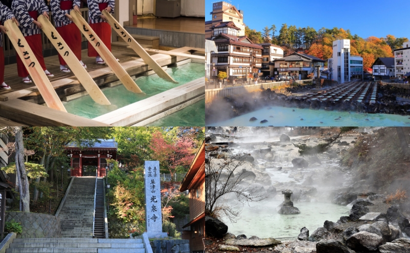 草津温泉に泊まって、草津温泉エリアの人気観光スポットである湯畑や熱乃湯、西の河原公園、湯畑・湯けむり亭、光泉寺、大滝乃湯などを巡る、1泊2日の草津温泉旅行プランをご紹介!人気の日帰り温泉も複数めぐる、温泉三昧プランです。