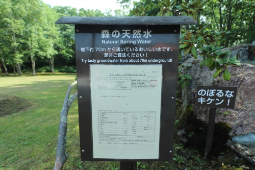 道の駅摩周温泉には裏庭のようなスペースがあり、そこでは「森の天然水」と名付けられた湧き水を汲むことができます。綺麗に整備された木立のなかで、地下約70メートルから湧いた水が勢いよく流れます。