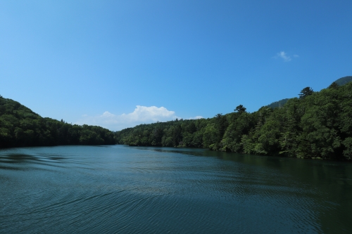 国道241号線沿いの第一駐車場からスタートして、湖畔沿いへ向かうルート。最初は山登りのような雰囲気でスタートし、背丈のある木々のなかを歩きます。