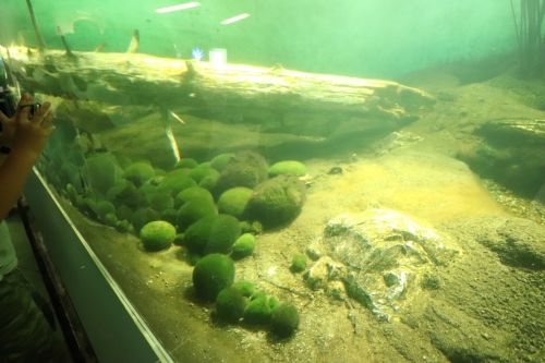 館内では、映像展示、アイヌ文化展示、水槽展示、動物展示などが行われています。特に水槽展示ではマリモもあり、阿寒湖由来の丸いマリモが展示されているのは珍しいそうです。