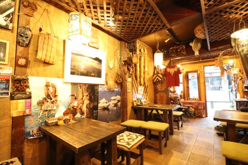 ディナーにおすすめなのが、アイヌ料理が食べられる「民芸喫茶ポロンノ」です。先述したアイヌコタン内にあります。お店は細長い造りになっていて、アイヌの飾りやポスターが壁一面に。お洒落な空間です。