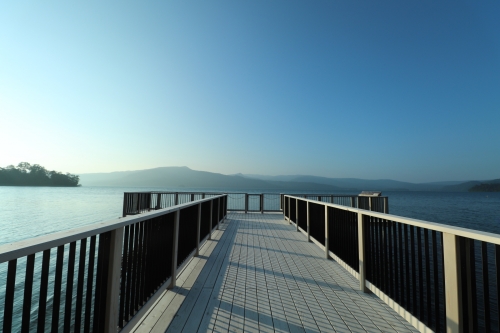 湖畔沿いでは、美しい夕景に出会うことができるでしょう。阿寒湖畔の澄んだ水と太陽に癒される瞬間です。湖へと近付けるデッキもありますので、ぜひ立ち寄ってみては。