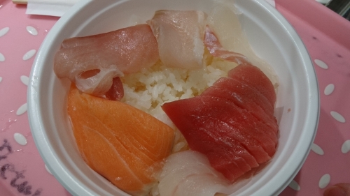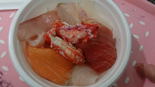 さて、お気に入りのネタを乗せ終わり、お会計を済ましたら、店員さんにわさびと醤油を付けてもらい、和商市場名物・勝手丼の完成です!