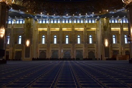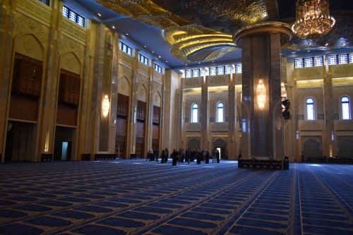 モスクの外観はベージュ一色で地味に感じられますが、内装の煌びやかさは目を惹きます。